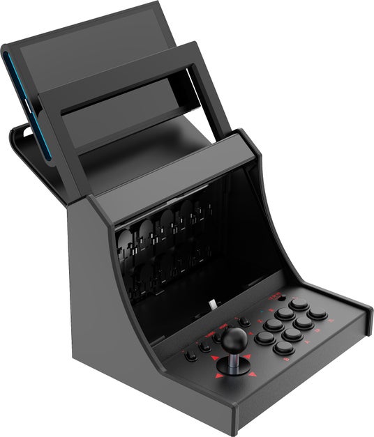 本製品は、Nintendo Switch(TM)本体をセットするだけで、懐かしのアーケードゲーム筐体のようなスタイルでプレイを可能にするディスプレイ一体型コントローラードックです。