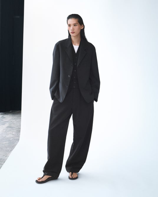 コンパクトな身ごろにゆったりとした袖を組み合わせたコットンブレンドショートブルゾンと、なめらかな素材を生かしたショートブルゾンがラインナップ。どちらも性別を問わずシーズンを通して活躍するアウターです。ボトムスとセットアップ可能な軽量ジャケットもメンズ、ウィメンズともに登場します。