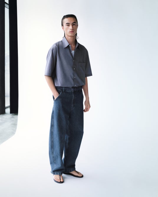 シルエットと素材のバランスを見直すことで定番のボトムスを現代的にアップデートしました。カーゴパンツは緩やかなカーブラインとワイドシルエットを採用し、立体的な表情を引き立てます。ヴィンテージライクな色合いのジーンズには、メタルアイレット付きのベルトを合わせて、Uniqlo Uらしい着こなしに。