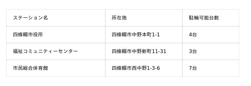 四條畷市役所や忍ケ丘駅北自転車駐車場など、市内8カ所で利用可能に
