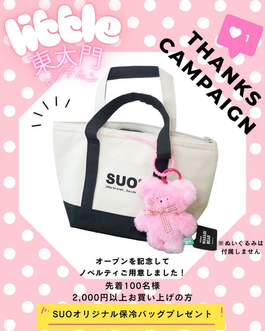 オープンを記念して、【2,000円以上お買い上げ】のお客様にSUOオリジナル保冷バッグをプレゼントいたします。