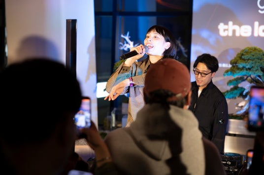 SPARTAのライブ後には、アーティストのSNEAKERWOLF、盆栽ブランドScapesを主宰する濱地周三、そして書道家の万美文字 / MAMIMOZIによるショートトークも実施。それぞれがアートに込めた思いや制作背景を語り、このラウンジを通して、新たな対話や感性の共有が生まれることへの期待を明かしました。