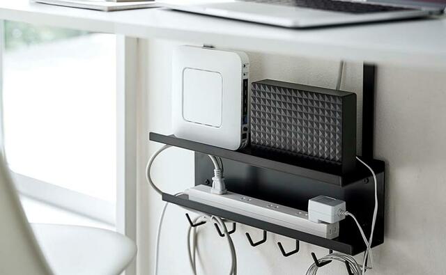 ゴチャつく電源タップやACアダプター・HDDをひとまとめに収納できるケーブルラック。
