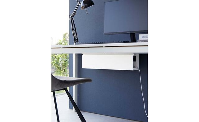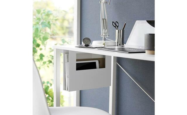 A4サイズまでの書類や資料、タブレットなどを、デスク下にまとめて収納できるこちら。