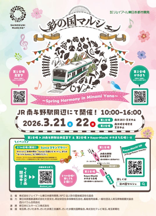 株式会社ジェイアール東日本都市開発とNPO法人彩の国地域活性化協会は、2026年3月21日(土)・ 22日(日)の2日間、駅高架下を活用した地域密着型マルシェ「彩の国マルシェ~Spring Harmony in Minami Yono~」を開催いたします。