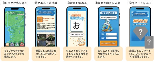 専用サイトの冒険ストーリーに沿ってクイズを解き進め、施設ゆかりの特製リワードをゲット!