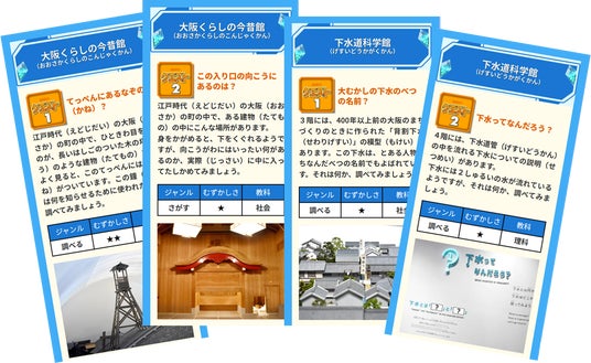 各文化施設とのコラボレーションによってクエストを作成。江戸時代の大阪の町や時代ごとのくらしのうつり変わり、くらしを支えるインフラなどをテーマにしたクエストを展開します。