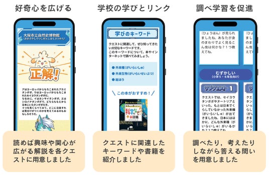 クエストを解けたら終わりではなく、そこから子どもの好奇心をさらに広げたり、学校での学びとリンクさせたりするような仕掛けを学習参考書の出版社ならではのアプローチで用意しました。
