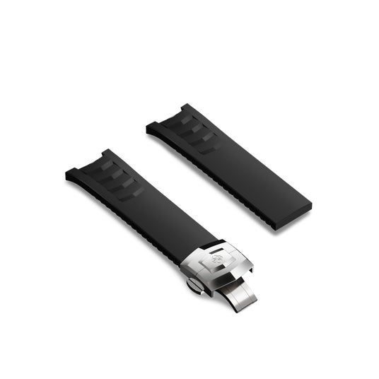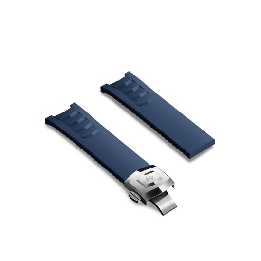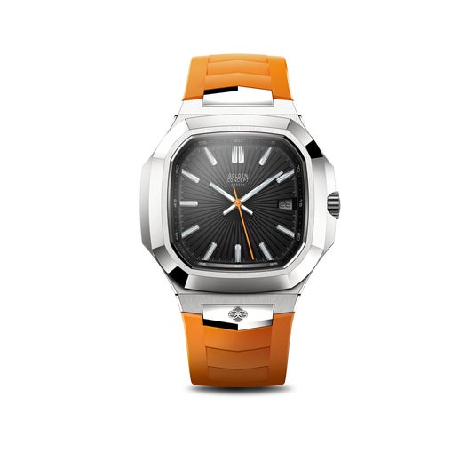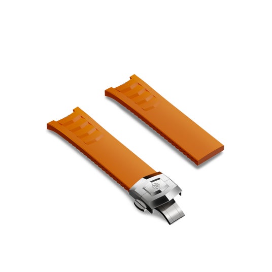 ラバーストラップには、従来のブラック、ブルー、グリーン、ブラウンに加え、新色としてシエラブルー、オレンジの2色が追加されました。耐久性と柔軟性に優れたフルオロエラストマー素材を採用し、鮮やかなカラーリングが腕元のアクセントとなります。