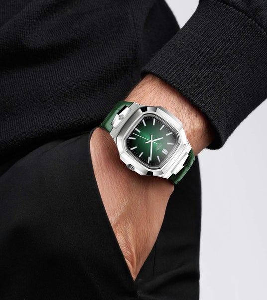新たに登場したレザーストラップには、ミシシッピアリゲーターレザーを使用。上品な光沢が特徴で、腕元にクラシックで上質な印象をもたらします。柔らかく手首に馴染む質感と耐久性を兼ね備えており、使い込むほどにレザーならではの風合いの変化も楽しめます。