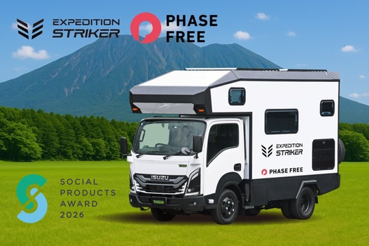 本製品は、防災活用を前提に開発され、キャンピングカー業界で初めてフェーズフリー認証を取得した車両です。日常と非常時を分けない設計思想と社会的意義の高さが評価され、今回の受賞に至りました。