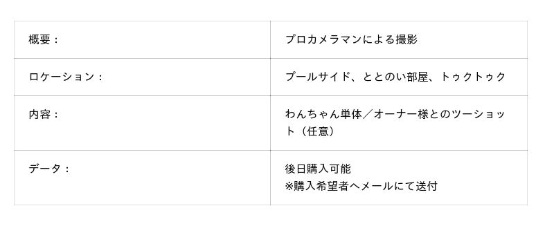 当日はプロカメラマンによる撮影を実施。トゥクトゥクやととのい部屋、そして8HOTEL CHIGASAKIの象徴的な存在であるプールサイドなど、非日常感あふれるロケーションで撮影が行われました。わんちゃん単体での撮影はもちろん、オーナー様とのツーショット撮影も行われ、会場には終始笑顔が広がりました。