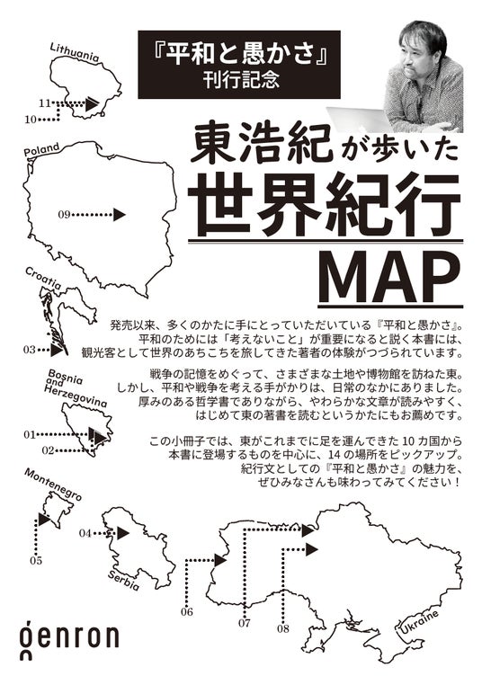 本書の刊行を記念し、関連書籍を紹介する「『平和と愚かさ』をつくった25冊」フェアを、ブックファースト新宿店さま、ジュンク堂書店池袋本店さまで開催中です。店頭では25冊のリストと、東浩紀が実際に旅をした場所を写真とともに振り返るリーフレット「東浩紀が歩いた世界紀行MAP」も配布しています。ぜひ店頭へ足をお運びください。
