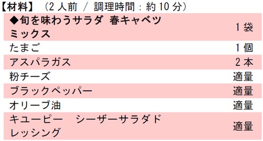 「旬を味わうサラダ」特設サイトで、アレンジレシピなどを2026年3月5日(木)から掲載予定です。ひと手間加えることで、食卓を華やかに彩ります。