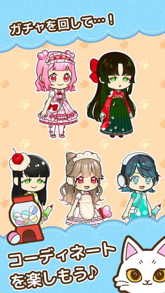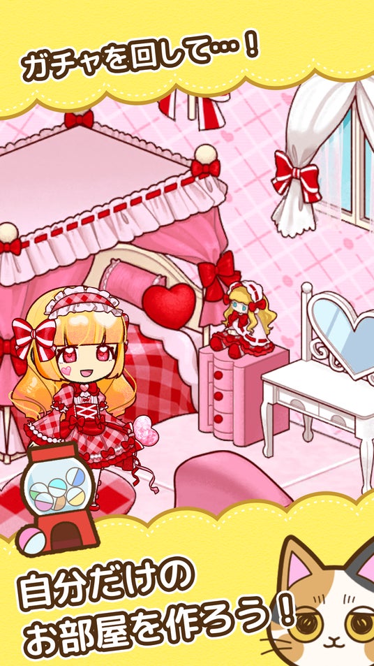 ・もらったコインでガチャを回し、家具、ネコのアクセサリ、ペル(アバター)の衣装などステキなアイテムをゲット!