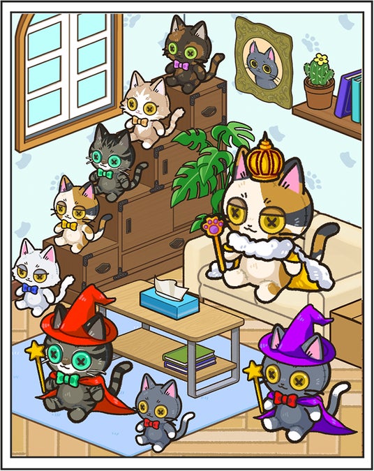 ・ナデナデしたりエサを上げたりしながらネコを育成できます。