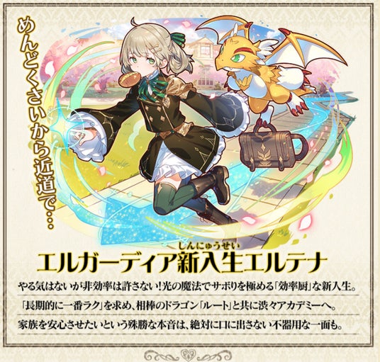 さらに、本イベント開始と同時に、レアガチャ「エルガーディア魔法剣術アカデミー エルテナ」が登場。ピックアップキャラクターとして、「エルガーディア新入生エルテナ」がラインナップしています。