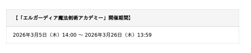 新イベント「エルガーディア魔法剣術アカデミー」開催!