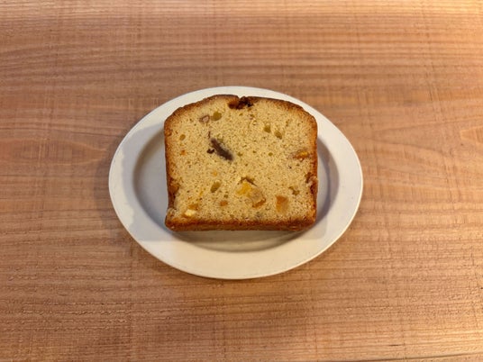 洋酒に漬け込んだドライフルーツとバターの豊かな香りに、カルダモンの清涼感を添えた大人のドライフルーツパウンド。一切れごとに、時間をかけて熟した味わいが広がります。