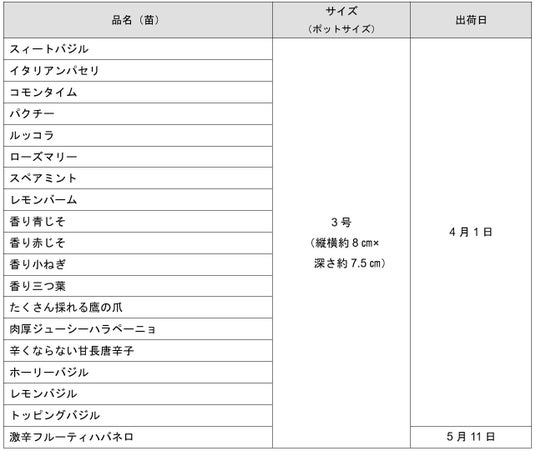 和のハーブを拡充した全19品のラインアップにより、さらに多くのお客さまに「育てて食べる」楽しみをお届けします。
