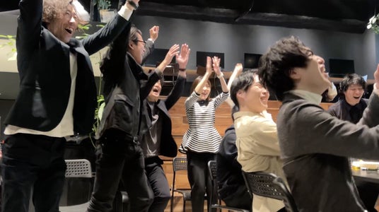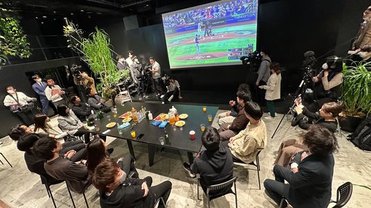 オフィスで「パブリックビューイング」をする社員たち
