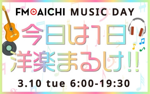 FM AICHI(株式会社エフエム愛知 名古屋FM80.7MHz / 豊橋FM81.3MHz)では、3月10日(火)に、音楽特集企画「FM AICHI MUSIC DAY ~きょうは1日洋楽まるけ!!~」を、放送する全ての生ワイド番組内でお送りします。