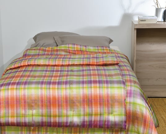 染織家志村ふくみ・志村洋子の芸術精神を継承し、草木染めや手織りという手仕事の営みを通じ、自然の生命が宿る色彩と美の世界を表現しています。今回の新作は染織家・志村ふくみが過去に織りためてきた草木染め、手織りの裂(きれ)をもとに、アトリエシムラが監修し、昭和西川がシルク生地として制作しました。草木染めならではの奥行きのある色彩が寝室を満たし、日々の眠りを確かな芸術と本物の美しさに包まれる特別な時間へと導きます。【商品紹介】