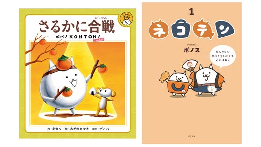 株式会社ポプラ社は、2026年3月4日(水)に『さるかに合戦 ビバ!KONTON!』と『ネコテン』を2冊同時刊行いたします。この2冊は、ポノス株式会社の大人気スマートフォンアプリ「にゃんこ大戦争」の書籍であり、『さるかに合戦 ビバ!KONTON!』は初の描き下ろし絵本、『ネコテン』は大人気WEBコミックの初の書籍化となります。