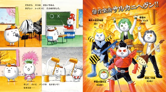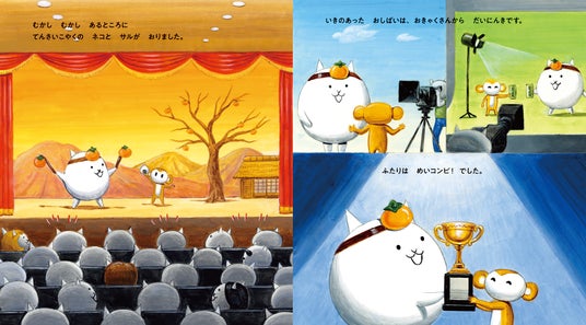 スマートフォンアプリ『にゃんこ大戦争』に登場する「さるかに合戦」を主人公とした、初の描き下ろし絵本。