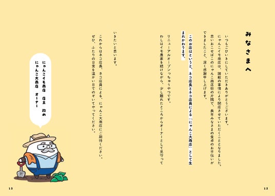 巻頭にはファン待望の完全新作描き下ろしマンガを収録!これまで一切姿を見せなかった、にゃんこ大商店の謎多きオーナーがついに初登場し、ネコ店長とネコ店員が「にゃんこ大商店」を始めることになった感動のきっかけが描かれます。