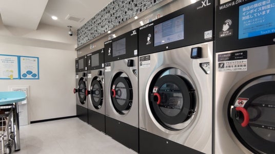 アレルゲンフリー・合成化学物質ゼロの”洗剤を使わない洗濯”とともに、タッチパネル付き洗濯乾燥機や、多様なキャッシュレス決済対応、多言語化、業界初のダイナミックプライシング導入など、最先端の技術を展開するコインランドリーです。