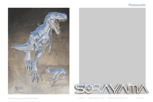 空山氏が1978年にウィスキーの広告のために最初に描いたロボット作品や、恐竜、ユニコーンなど幅広くロボット造形を追求した最新のキャンバス作品、デザインを手がけたAIBO(アイボ)の原画や、エアロスミスのアルバムジャケットとして知られる代表作品に加え、最新の彫刻作品、新作の映像インスタレーションが展示。空山基が半世紀にわたり追い求めてきた、光・透明・反射という表現の核を圧倒的なスケールで体感できる。