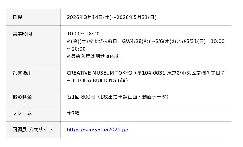 キタムラ・ホールディングス グループのピックハイブ株式会社(本社:東京都新宿区、代表取締役社長 兼 COO:大迫 由典)が運営するセルフフォトブランド「Photomatic(読み:フォトマティック)」は、2026年3月14日(土)より東京・京橋のCREATIVE MUSEUM TOKYOにて開催される、アーティスト・空山基氏による過去最大規模の回顧展『SORAYAMA 光・透明・反射 ーTOKYOー』にセルフフォトブースを設置いたします。回顧展の開催を記念し、空山基氏の作品をデザインした限定フレームで撮影をお楽しみいただけます。