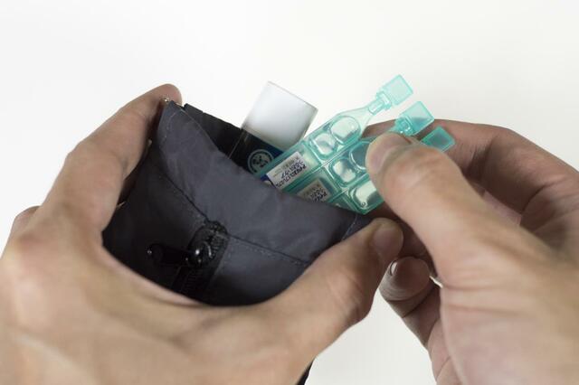センターについているファスナーをあけてポケットティッシュを入れてみましょう。