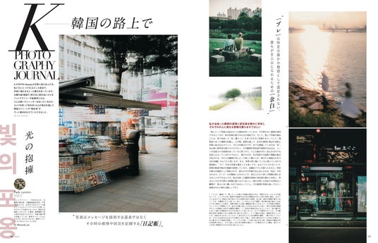 演出家、映像作家、写真家とさまざまな顔を持つ柿本ケンサク。「この世界には、単なる記録ではすくい取れないものが、たしかにある。風のにおい、街の湿度、誰かの気配、誰も気づかずに通り過ぎた影、それらが交差するほんの一瞬の“ゆらぎ”を、僕は路上で探している」。写真は、説明のための道具ではないと話す柿本による、「記録を超え、記憶の断片のように溶けていく時間」を8ページで特集します。