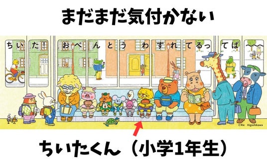 最初にでてくる、陸上練習中(?)の3匹とお猿のコーチ、そのあとに出てくる人々もみーんな揃ってちいたを追いかけているのが可愛いなと思いました。