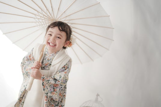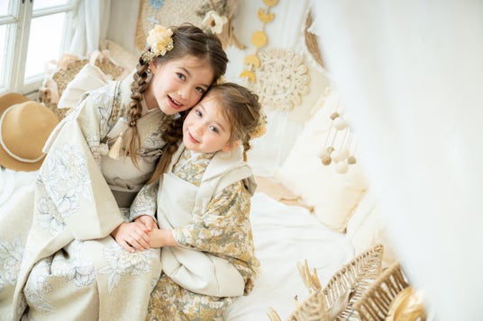 特に、ビンテージとは異なる味わいのコフレオリジナル和装は七五三撮影でも大変人気が高く、ごきょうだいやご家族様のトータルコーディネートのご提案や、お⾐装のレンタルも可能です(※3)。お宮参りの産着レンタルサービスも承っており(※4)、撮影前後1か月の期間であれば無料でご利用いただけます。