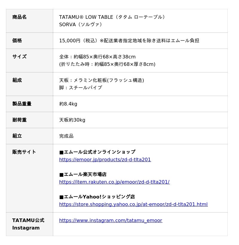 人間工学に基づいた空間有用性と安全な使い心地を両立するトランスフォーム家具ブランドTATAMU(R)を展開する株式会社エムール(東京都立川市:代表取締役 高橋 幸司)は、2026年3月6日より、折りたたんでスマートに扱えるローテーブル「SORVA/ソルヴァ」(以下、ソルヴァ)の販売を開始しました。