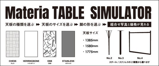 クラッシュプロジェクトのブランドサイトでは、天板のデザイン、サイズ、脚のデザインを選ぶと、実際に組み合わせた写真と商品金額をご確認いただけるシミュレーションを公開しています。
