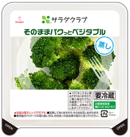 野菜スティックと一緒に入っていたのが、グループ会社の株式会社サラダクラブが販売する「そのままパクっとベジタブル 国産蒸しブロッコリー」です。マヨネーズと相性が良いブロッコリーは、2026年4月に52年ぶりに指定野菜に追加されることから、注目が高まっています。