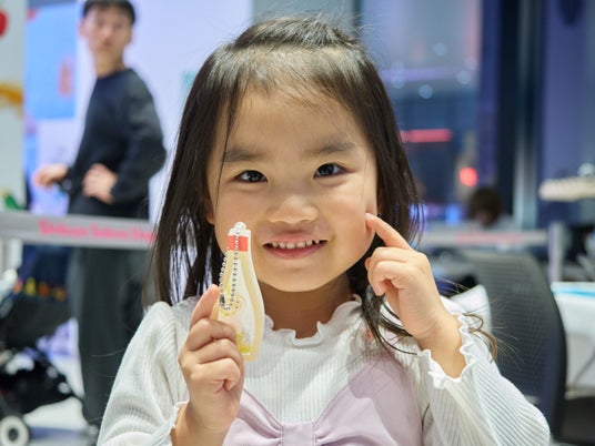 また会場内には、マヨネーズの大きな星型キャップの中で写真が撮れる「ビッグマヨキャップフォト」や、巨大ボトルを抱えているように見える「トリックアート フォトブース」などの写真スポットを設置 。キユーピー人形が登場するグリーティングも行われ、親子で記念撮影を楽しんでいただきました。