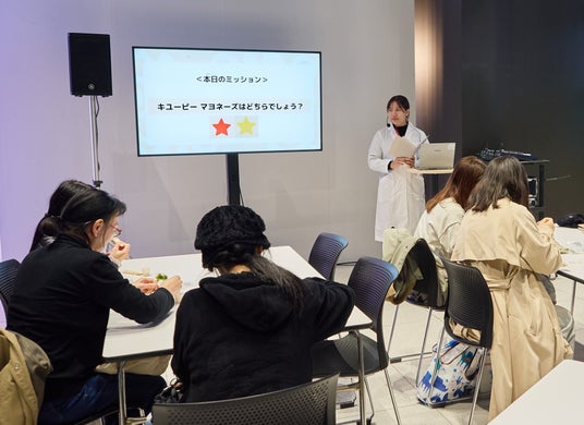 「コクとうま味の体験ラボ」では、キユーピー研究員が講師として登壇 。卵黄をたっぷり使うことで生まれる「熟成」の秘密を、クイズを交えて科学的に解説しました 。参加者からは「マヨネーズができてから熟成することでおいしくなるなんて驚きだった」と、学びとおいしさの両面で満足度の高い感想が寄せられました。