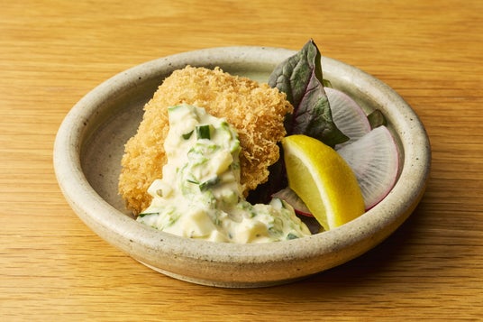 千葉県産アジのフライ漁獲量が全国トップクラスで、南房総エリアで親しまれている鯵。身がふっくらとした鯵を、生パン粉で揚げた揚げたてのサクサクとしたアジフライに仕立てました。あおさ入りの自家製タルタルソースを添え、たてやまかおり菜園の新鮮で色鮮やかなお野菜と共に提供いたします。