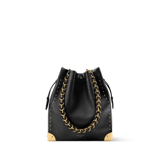 タイムレスかつモダンな魅力が詰まった、エレガントなバケットスタイルの「ノエ トランク」。メゾンのアイコニックな旅の伝統を讃えるトランクから着想を得たコーナー部分や、取外し可能な編み上げチェーンにあしらわれた上品なゴールドカラーの金具が魅力です。貴重品を安全に守るドローストリング開閉式のデザイン。