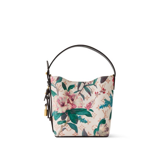 鮮やかなフローラル・パターンが際立つモノグラム・デュンヌ キャンバスの「オール・イン BB」。クラシックなバケットシェイプにレザートリミングを施し、ゴールドカラーのパドロック(錠前)やシグネチャーのLV ネームタグでアクセントを添えました。内装には取外し可能なファスナー式ポーチを配し、スマートフォンや財布、鍵などを収納できる充分なスペースを備えています。