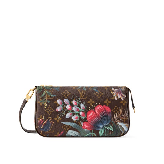 華やかさと洗練を兼ね備えた、個性豊かなフローラル・モチーフがあしらわれた「ポシェット・アクセソワール」。アイコニックなモノグラム・キャンバスにスムースレザーのトリミングを施し、スタイリッシュなゴールドカラーの金具で仕上げた、コンパクトなデザイン。開口部を開くと、日常の必需品を持ち運びできる広々としたコンパートメントが現れ、カードやメモなどを収納できるフラットポケットも備えています。