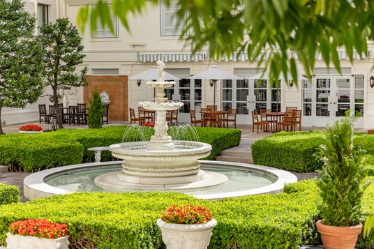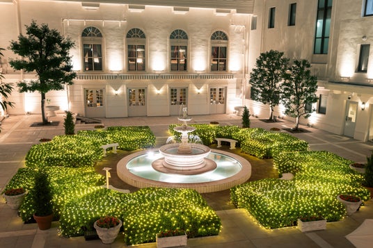 ヨーロッパの街角に佇む邸宅の中庭に迷い込んだようなクラシカルな雰囲気のパティオには、イタリアから取り寄せた噴水を中央に配し、異国情緒漂う憩いの空間が広がっています。日没以降はイルミネーションが煌めく空間をお楽しみいただけます。