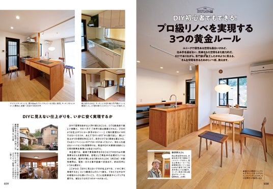 特集は「DIYリノベのアイデア図鑑」。古い家を再生するための自作ポイント&テクニックをカテゴリー別に徹底紹介。バラエティあふれるDIYならではのリノベ技を網羅した、セルフリノベーター必携の保存版特集。