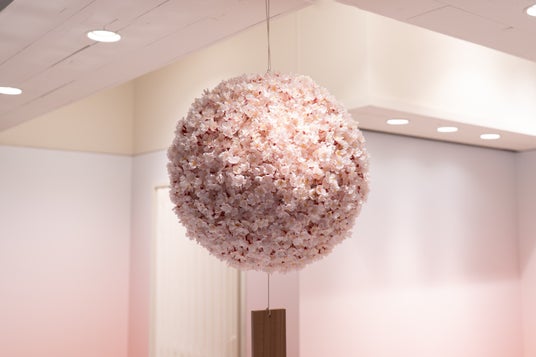 会場を彩る「桜玉」は、日本酒の酒蔵に吊るされる「杉玉」がモチーフ。酒蔵はスギの葉を束ねてボール状にしたものを軒先に吊るすことで新酒が完成したことを知らせますが、このポップアップでは春の訪れを祝うしるしとして桜玉を展示。来場されたお客様の心華やぐひとときに寄り添います。この桜玉を目印に、ぜひ会場に足をお運びください。