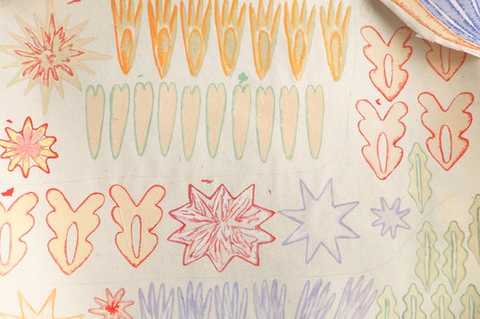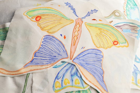 Mona Sugataは、200年以上にわたりフランスで受け継がれてきたクチュールのコテ技法を参照し、熱したコテで布を成形しながら立体作品を制作しています。染料の滲みや皺の出方といった布の不確定な反応を制御するのではなく、「素材との対話」として受け入れる制作態度が特徴です。そうして生まれる造形は、固定された完成形ではなく、光や空気、時間によって表情を変える“状態”として存在します。また、SugataはかつてTiffany & Co.にて約10年間ジュエリー彫刻師として従事。細密で集中力を要する手仕事の経験は、現在の制作における緊張感と精度へと繋がっています。硬質な金属から柔らかな布へと素材は変わりましたが、細部に宿る密度と時間をかけて向き合う姿勢は一貫しています。